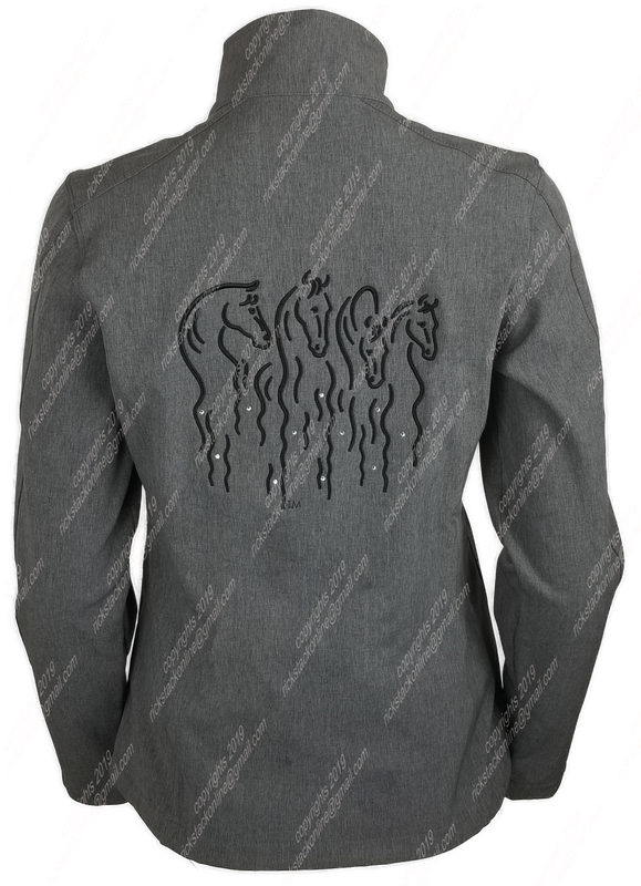 This is a ladies fit jacket. There are rhinestones on the front and back of the jacket.