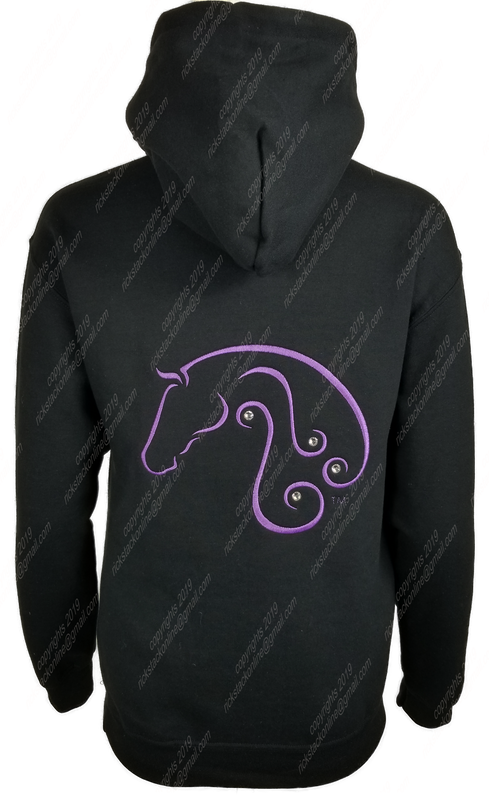 This is a beautiful horse head that you will get many compliments. There are rhinestones accenting the curves of the horse head. The image is included on the front and back of the hoodie.