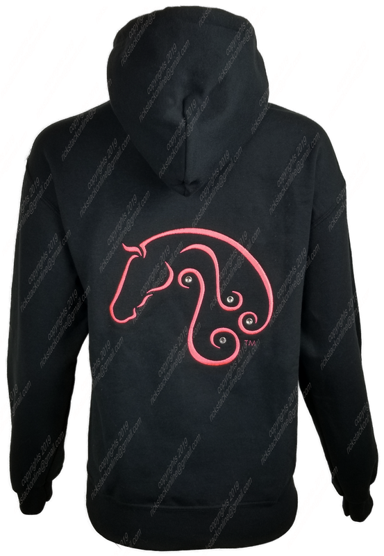 This is a beautiful horse head that you will get many compliments. There are rhinestones accenting the curves of the horse head. The image is included on the front and back of the hoodie.