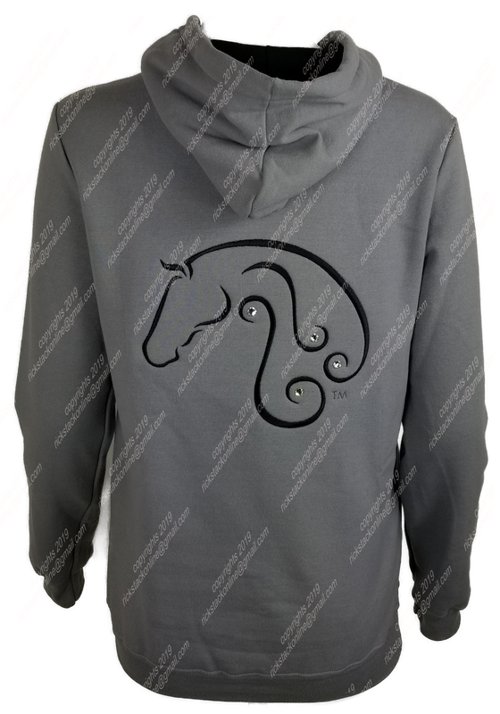 This is a beautiful horse head that you will get many compliments. There are rhinestones accenting the curves of the horse head. The image is included on the front and back of the hoodie.
